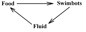 Throughout the simulation it is exchanged between fluid, food, and swimbots,