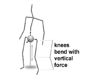 Two forces act upon the avatar body to affect its linear velocity and angular velocity: 1) the knee force,