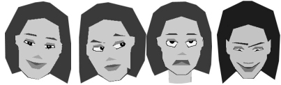 Figure 6 shows four examples of facial expressions. The rendering style here uses flat shading and real