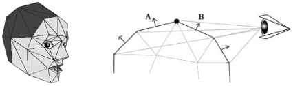 Fig. 8. a) Facial geometry showing all edges, b) silhouette edge detection