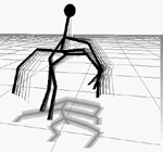 locomotion strides or dancing in place to a strange polyrhythm. Participating