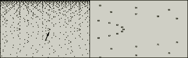 But trees have many many roots. And alas, so does the divisor plot: the square root boundary is not the only parabola-rich place in the divisor plot. As we delve deeper and rightward along the divisor plot, the roots accumulate in number and they sink deeper.