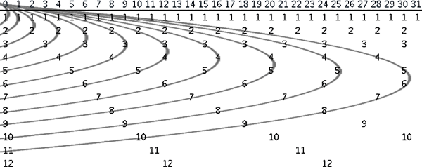 When considered as a member of a square root parabola, a divisor is one of an ordinal set of integers from 0 to n, occurring on one of the square root parabolas Pn.
