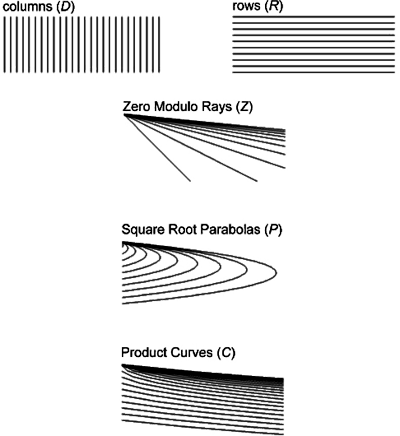 The last three classifications are special: each consists of a set of curves, and each curve has an ordinal set of integers running through them. Let's take a good look at these last three classifications. Check out how each curve contains an ordinal set of integers.