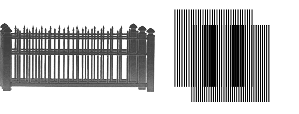 Imagine a series of picket fences stacked in front of each other. Each picket fence has different spacing between its wooden slats.